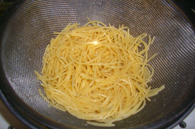選択を誤りました。金属の金網を使用したために、パスタがブツ切れです。
