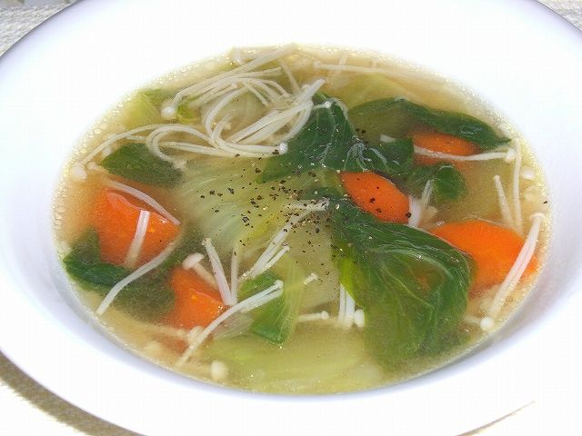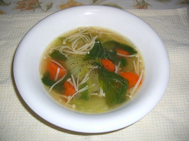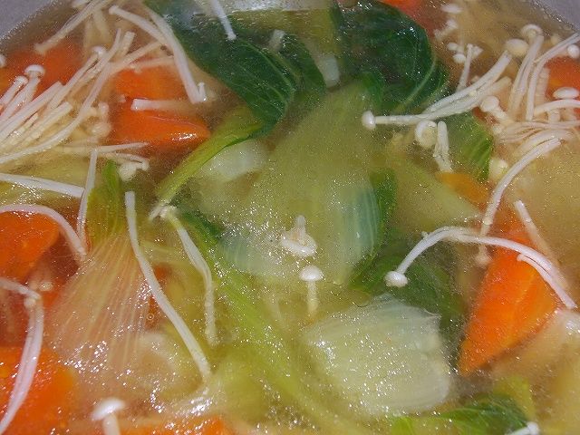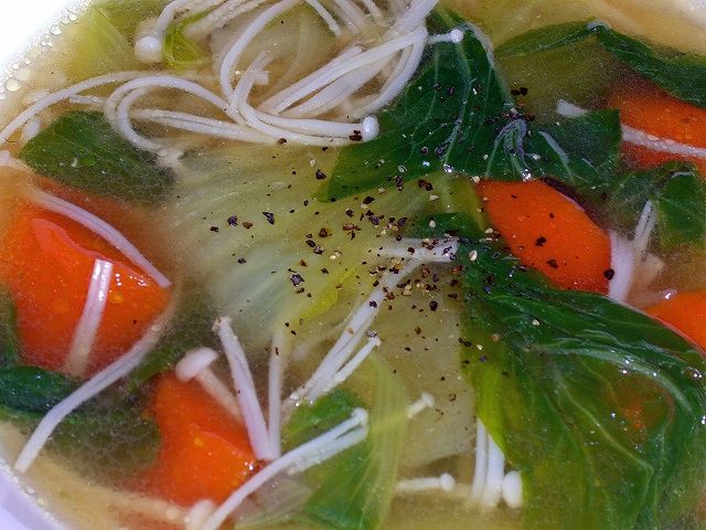 その際に、あくを取り除いた後に残った鶏がらスープをベースにして簡単な野菜スープを作りましたとさ・・・というお話です。因みに、私の場合、茹で上げる際に結構塩を入れていますので、薄めなくてはなりません。