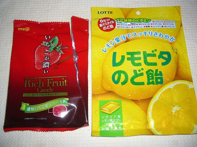 こちらは、姉妹品の「いちごが濃い」、ライバル社ロッテの「レモビジタのど飴」ですね。
