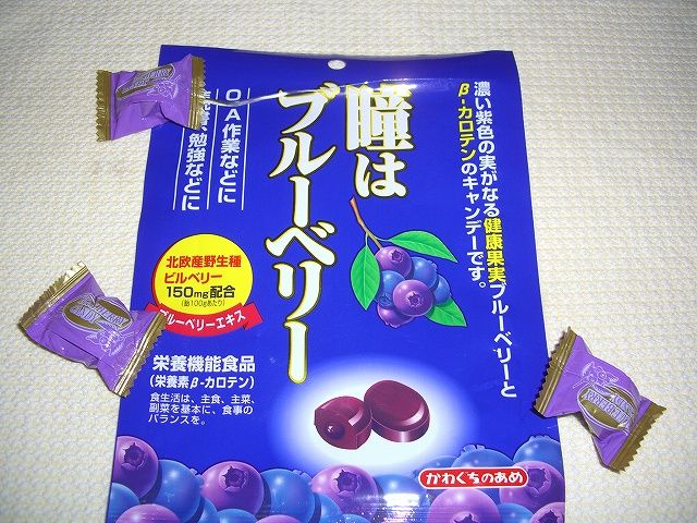 或る日、ふと家族の一人がおもむろに袋を破り口に何かを放り込むのを観察した私は、それは何かと尋ねると眼に良いアメちゃんだよと答えました。普段なら子供の食い物になど眼もくれない私なんですが、思わず私にも一つくれと懇願してしまいました。笑い^^!