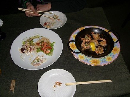 楽々座という名のイタリアンの店が難波の楽座の通りにあるという冗談のようなお店の紹介です。このお店3坪位でカウンターのみのイタリアンレストランなんです。そして、小さい小窓から店内の様子が伺えるですが、いつ見ても一杯で、ナイフとフォークをせわしく動かし美味そうなパスタを召しあっている老若男女の姿があります。いつか入ってみようと思い数えたら17年がたちました。窓から見えるマスターらしき方の髭があるときと無いときがあった様な無かった様な気がする今日この頃です。ちなみに恐らく席数は12席位でしょうか!?どうです、旨そうなメニューが並んでいますね。活たこの香草バター焼き880円、たこ梅のたこの甘露煮より安いじゃありませんか。ジャーマンポテトって普通のポテトとどう違うんだろう。