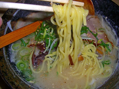 写真では普通のラーメンの麺に見えますが、極細ではありませんが、典型的な九州の豚骨ラーメンにあう細麺です。25年前の熊本一番の麺に近いものがありますね。茹で加減も合格です。