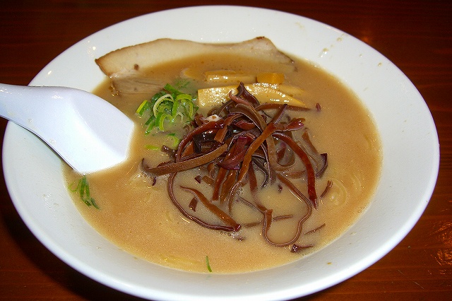 一応、参考までに、スープは所謂和歌山ラーメンに近い、且つ流行のマイルド豚骨系のものです。普通に美味くは感じますが、正直感動はありません。スープは薄い色とまでは云いませんが本格的なマイルド系に比べると第一印象はあっさりしている様に感じますが、暫らく頂くと流石に豚骨らしさが出てきます。背脂はなかったと思いますので、そこの辺りは評価に値しますが!?木耳もちゃんと添えてあるんですがね。